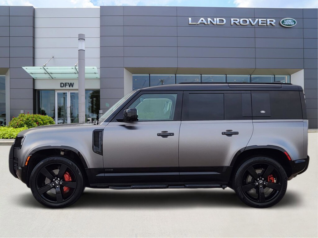 Certified. 2023 Land Rover Defender 110 X Santorini Black Metallic 4WD 3.0L I6 Clean CARFAX. Apple CarPlay / Android Auto, Backup Camera, Bluetooth, Cruise Control, Heated and Cooled Seats, Keyless Entry, Leather, Navigation / GPS, Panorama Sunroof, Premium Sound, Steering Wheel Controls, Sunroof / Moonroof, 14-Way Heated & Cooled Electric Memory Seats, 3-Zone Climate Control w/Rear Cooling Assist, Air Quality Sensor, Apple CarPlay & Android Auto, Auto High-beam Headlights, Auto tilt-away steering wheel, Auto-dimming Rear-View mirror, Automatic temperature control, Body Colored Roof, Cabin Air Ionization w/PM 2.5 Filter (DISC), Extended Black Exterior Pack, Exterior Parking Camera Rear, Front dual zone A/C, Front fog lights, Fully automatic headlights, Garage door transmitter: HomeLink, Gloss Black Front Grille, Heads-Up Display, Heated front seats, Heated rear seats, Memory seat, Navigation system: Connected Navigation PIVI Pro, Power driver seat, Power moonroof, Power passenger seat, Radio: 700W 15 Speaker Meridian Surround Sound Sys, Remote keyless entry, Ventilated front seats, Wheels: 22 Gloss Black Finish Style 5098, Windsor Leather Seat Trim.Recent Arrival!